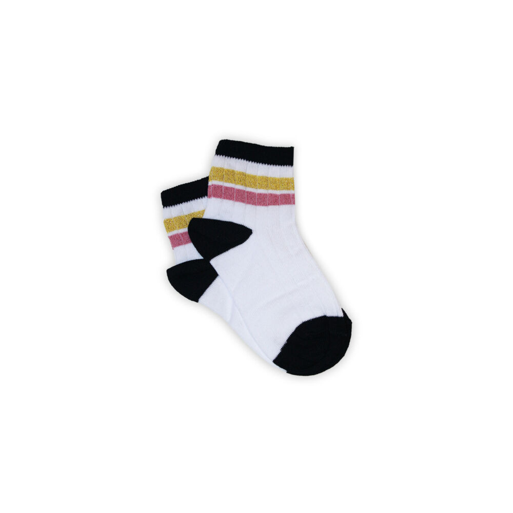 Chaussettes en coton pour fille - côtelées - pailletées - rayées vert-rose - 23-28