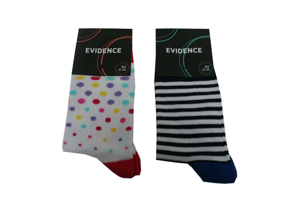 Chaussettes en coton - 2 paires - motif - 23-26 - pois-rayures - Evidence