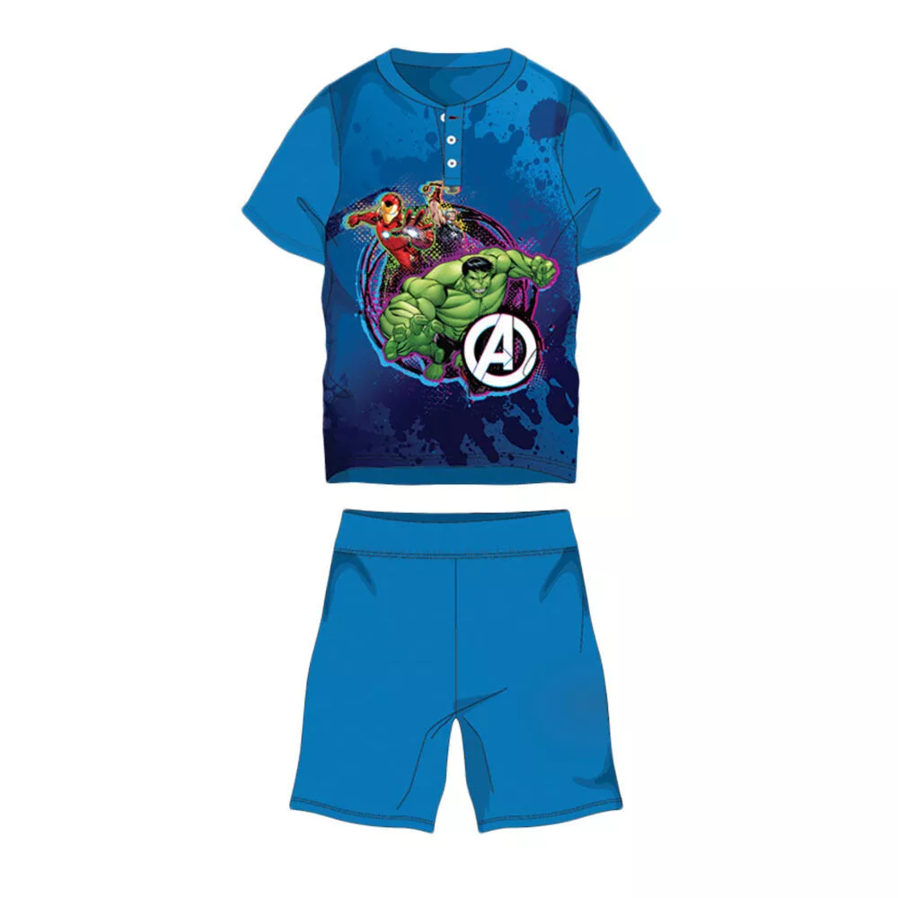 Pyjama d'été à manches courtes en coton pour enfants - Avengers - bleu moyen - 110