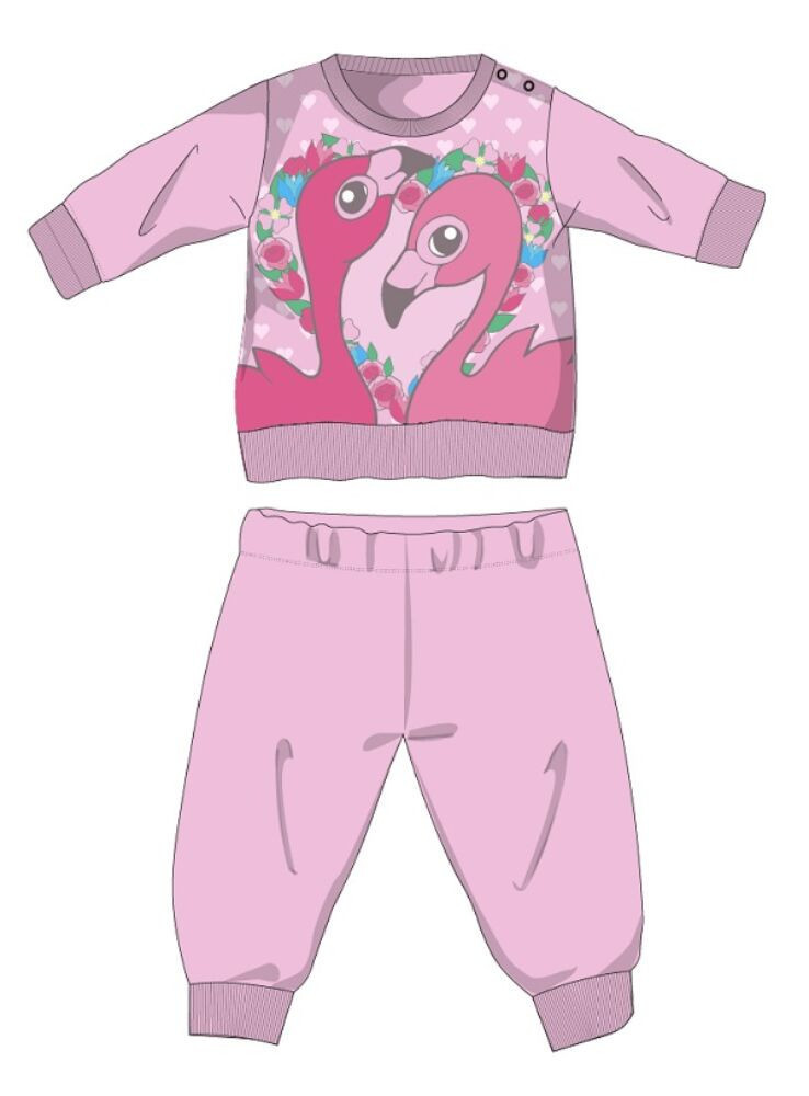 Flamingó téli pamut baba pizsama - interlock pizsama - világosrózsaszín - 98