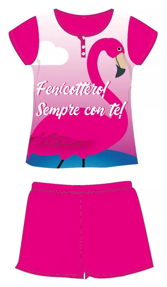 Flamingo summer short sleeve children's pajamas - cotton jersey pajamas - pink - 128