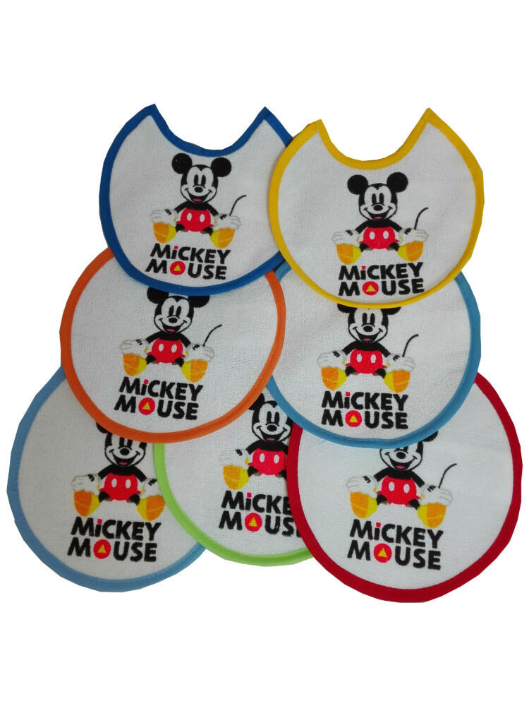 Bavoir Mickey Mouse pour bébé 7 pièces/paquet - bavoir en coton - 16x16 - bleu clair-bleu moyen-bleu foncé-jaune-orange-rouge-vert
