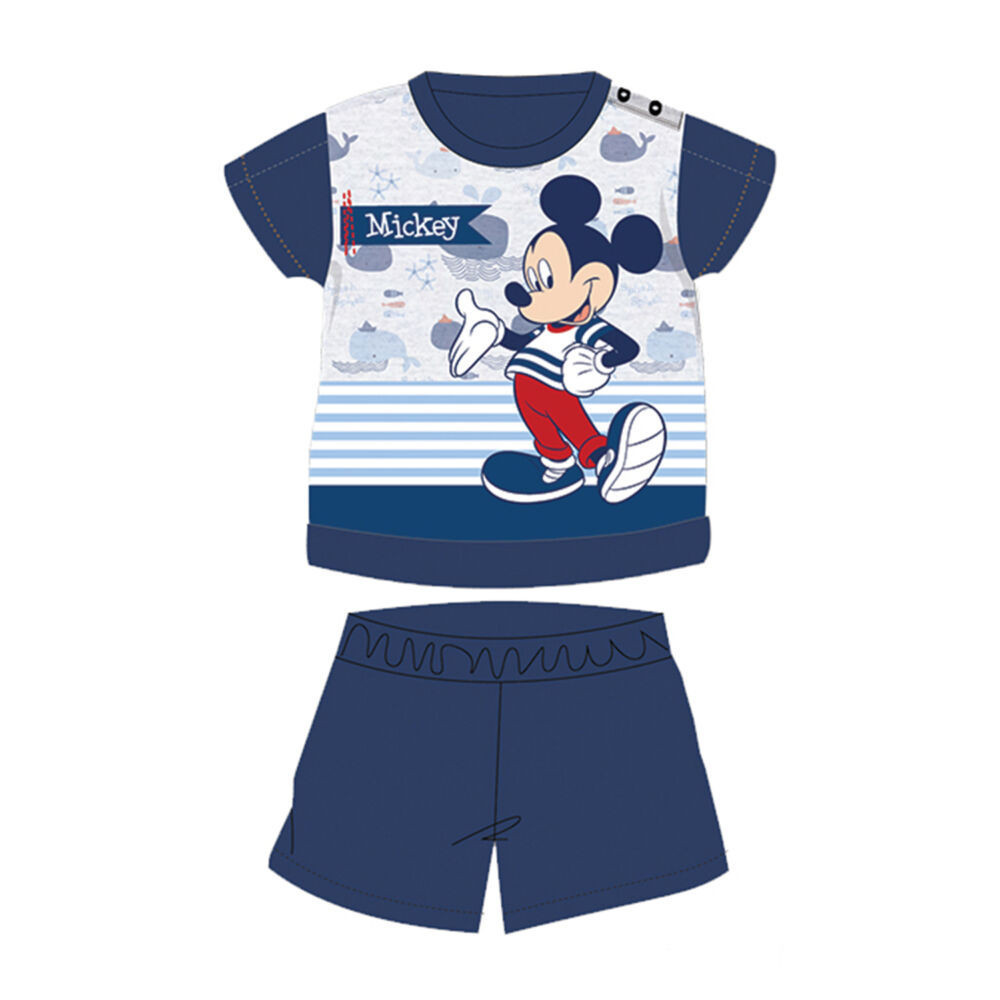 Grenouillère bébé en coton à manches courtes pour l'été - Disney Mickey Mouse - rayé - bleu foncé - 80