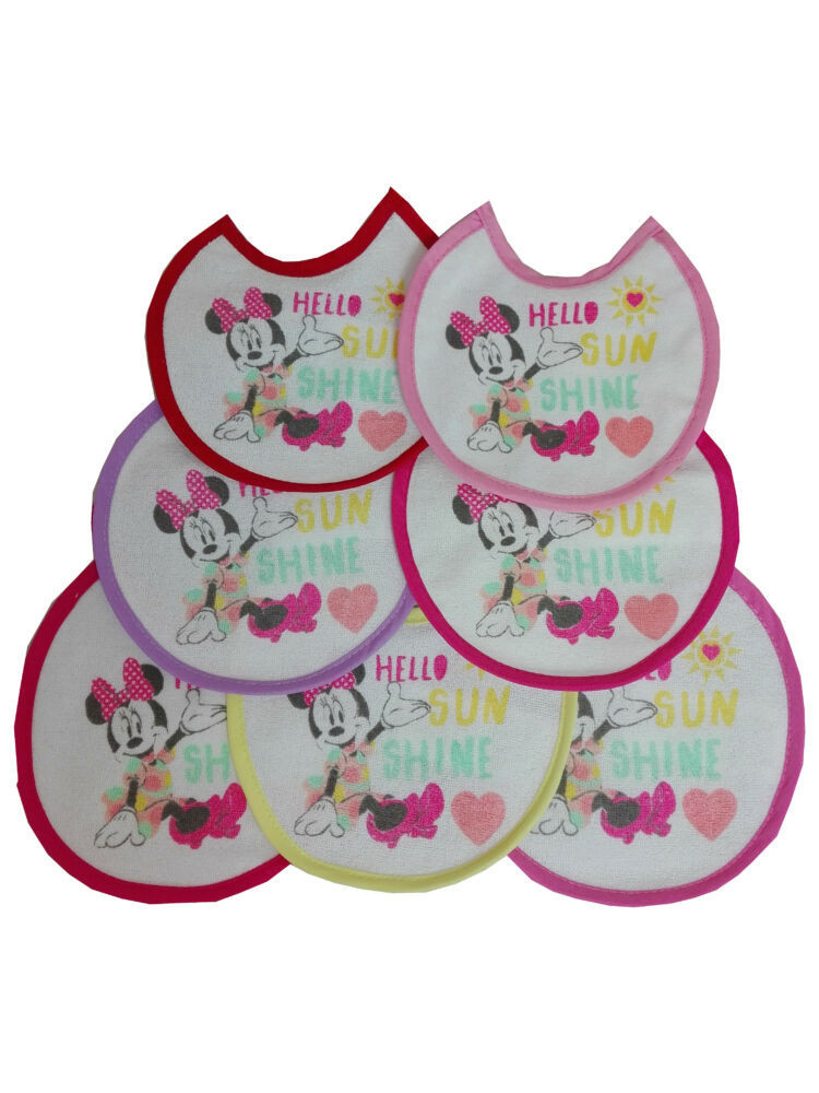 Bavoir Minnie Mouse pour bébé 7 pièces/paquet - bavoir en coton - rose clair-rose-rose foncé-rose-pink-rouge-violet-jaune