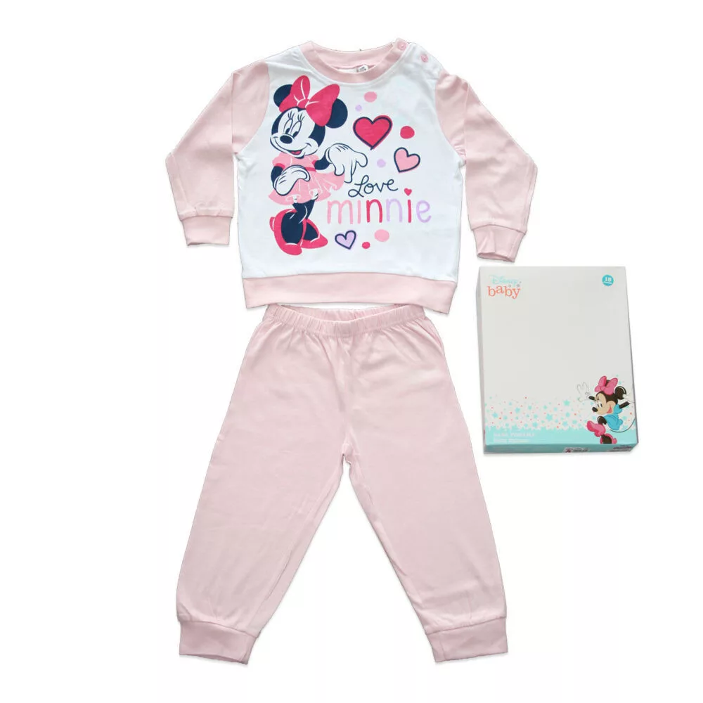 Grenouillère bébé en coton fin à manches longues - Minnie Mouse à cœurs - Jersey - rose clair - 86