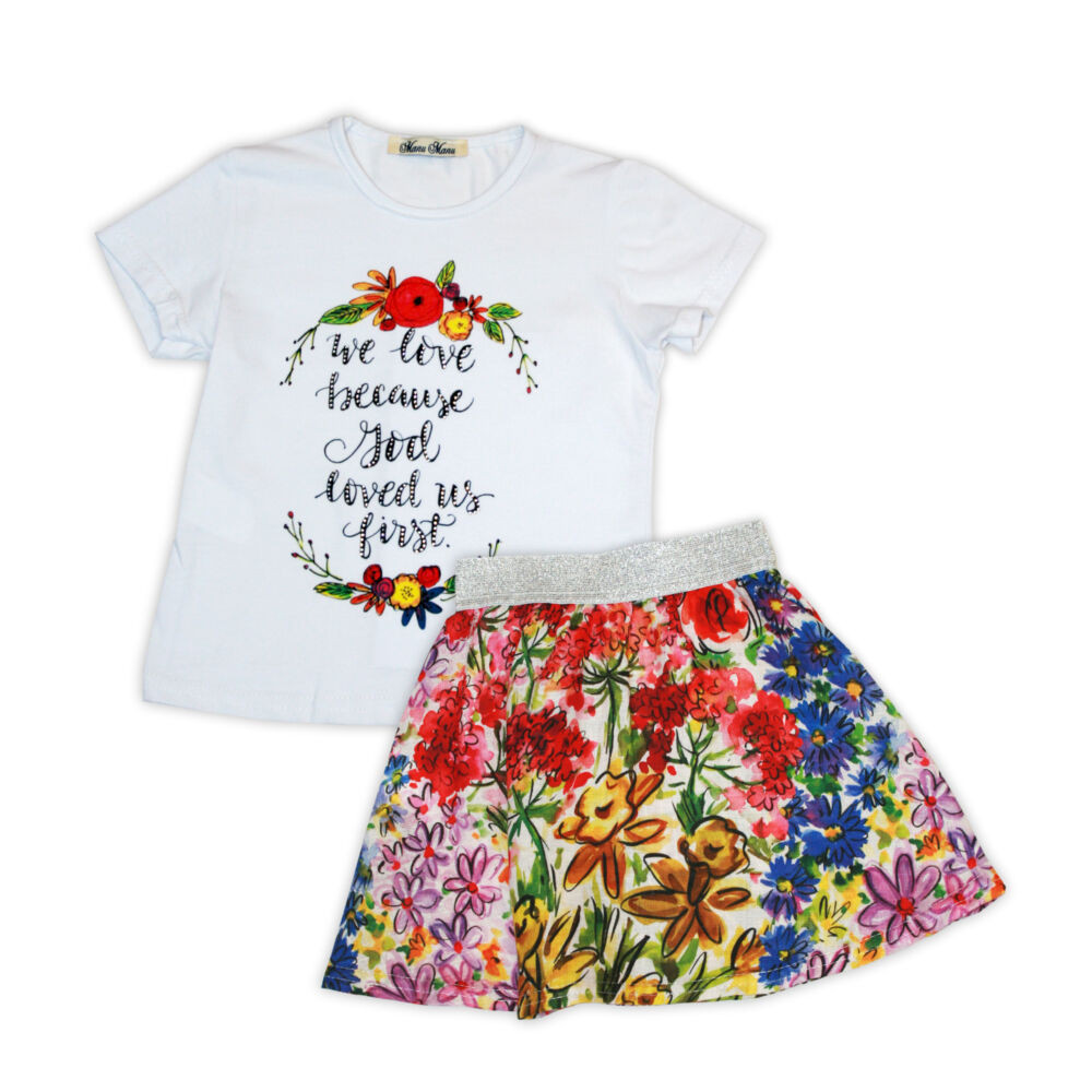 Ensemble d'été imprimé fleurs pour filles - ensemble en coton - blanc à fleurs - 122