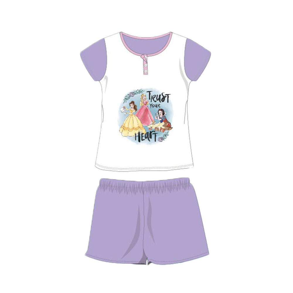 Pyjama d'été à manches courtes en coton pour enfants - Princesses Disney - avec inscription "Trust your heart" - violet clair - 98
