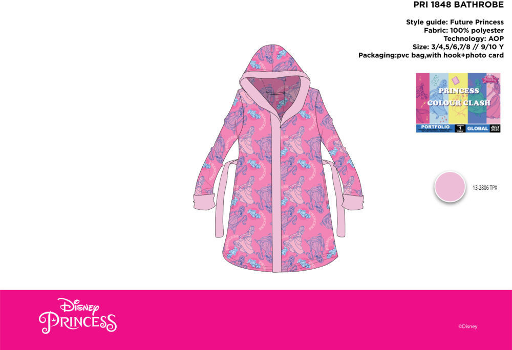 Peignoir en coton à capuche Disney Princesses - rose clair - 110-116