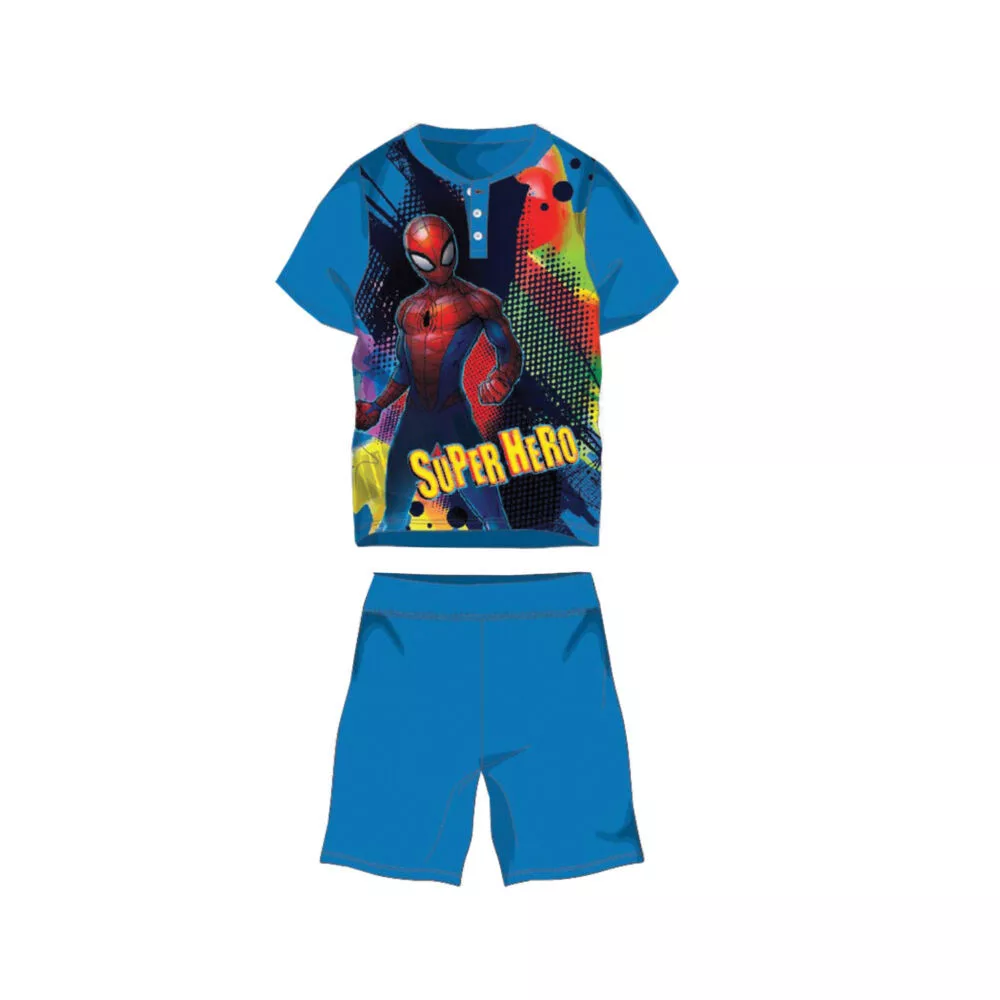 Pyjama en coton d'été à manches courtes pour enfants - Spiderman - avec inscription Super Hero - bleu moyen - 122