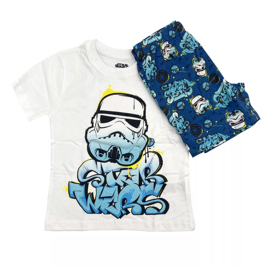 Star Wars gyerek rövidujjú pamut pizsama - Kék/Fehér - 116