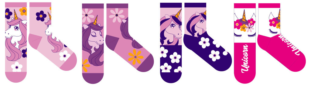 Licorne chaussettes normales en coton pour enfants - 4 paires/pack - 27-30