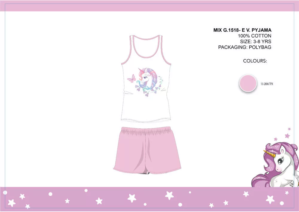 Pyjama en coton d'été sans manches pour enfants avec licorne - pyjama en coton - rose clair - 128