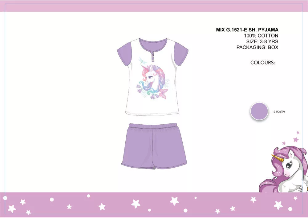 Pyjama en coton d'été sans manches pour enfants avec licorne - pyjama en coton - rose clair